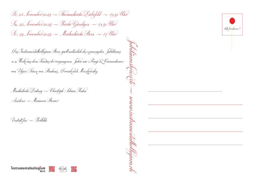 Samstag, 22. November 2025, reformierte Kirche Gümligen, 19:30 Uhr